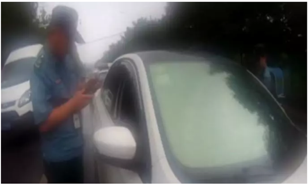 这是近日交通执法人员正在查处非法网约车的现场。