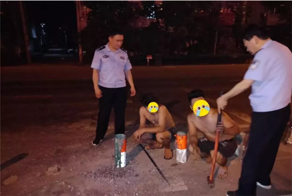 “那个人在干啥?鬼鬼祟祟的,去看看。”5月30日夜里11点多,临泉县公安局牛庄派出所民警例行巡逻中,发现一名男子正在道路中间的弯腰做着什么,身旁还放着一个装有钢瓶气罐的小推车。民警立即下车查看,一名男
